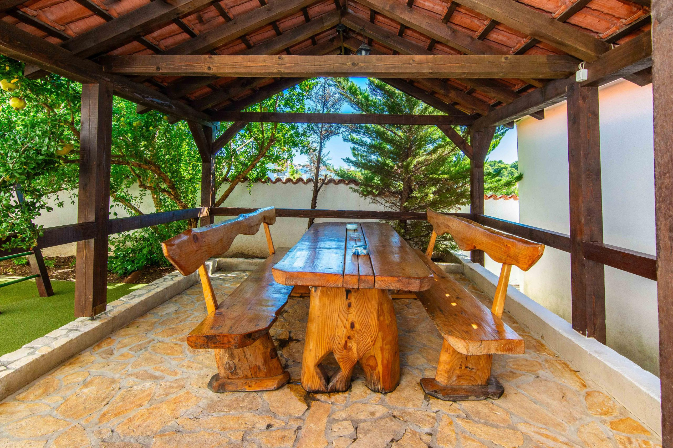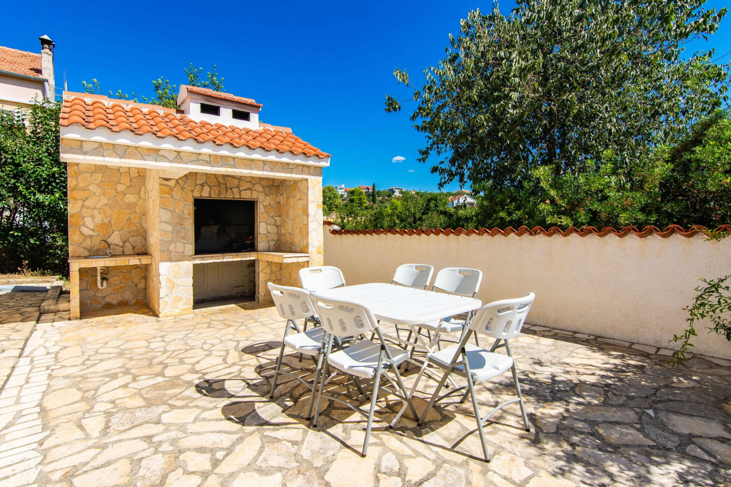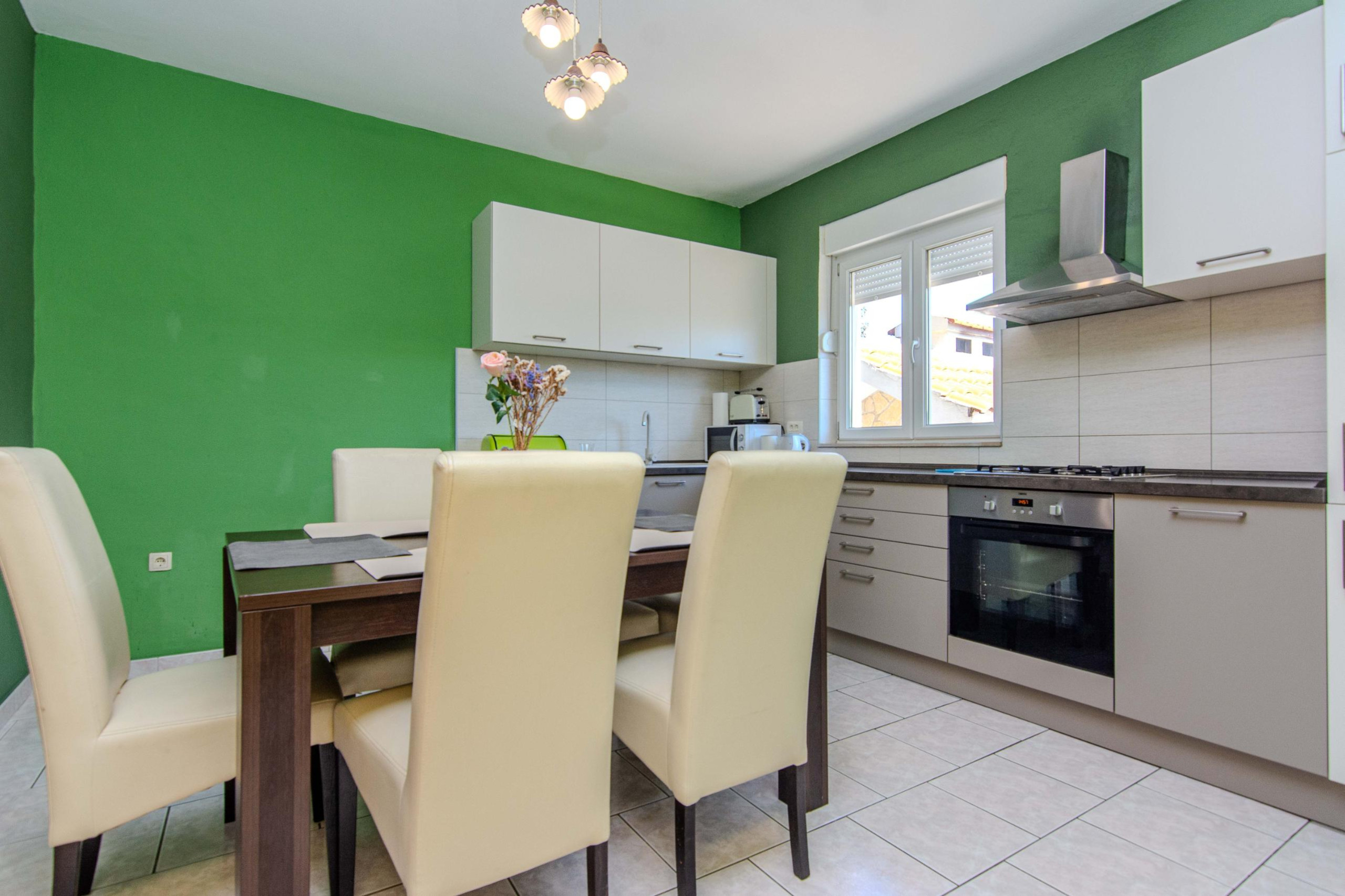 The kitchen is decorated in an authentic Dalmatian, rustic style and is fully equipped with all the necessary appliances and utensils for preparing meals.