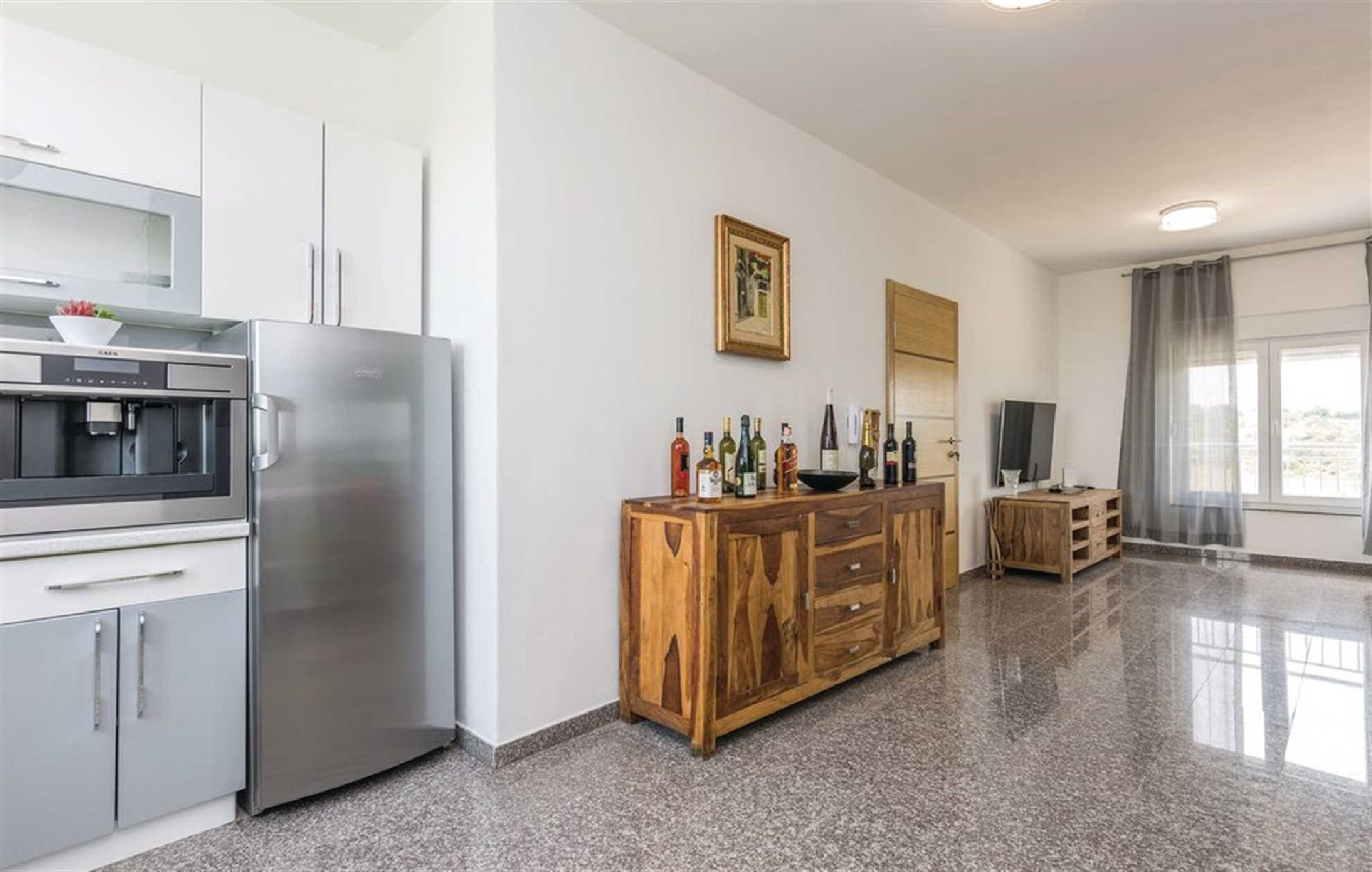 Villa Mary Lou spans 259 m² and is ideal for accommodating 8 to 10 guests. On the ground floor, you will find a modern kitchen with a stove, dishes, cutlery, an oven, a toaster, a microwave, and a dishwasher. Enjoy your meals in the dining area with a large dining table, which is located right next to the kitchen. The living room with a TV is adjacent to the dining area, providing the perfect space for relaxation during shared moments.