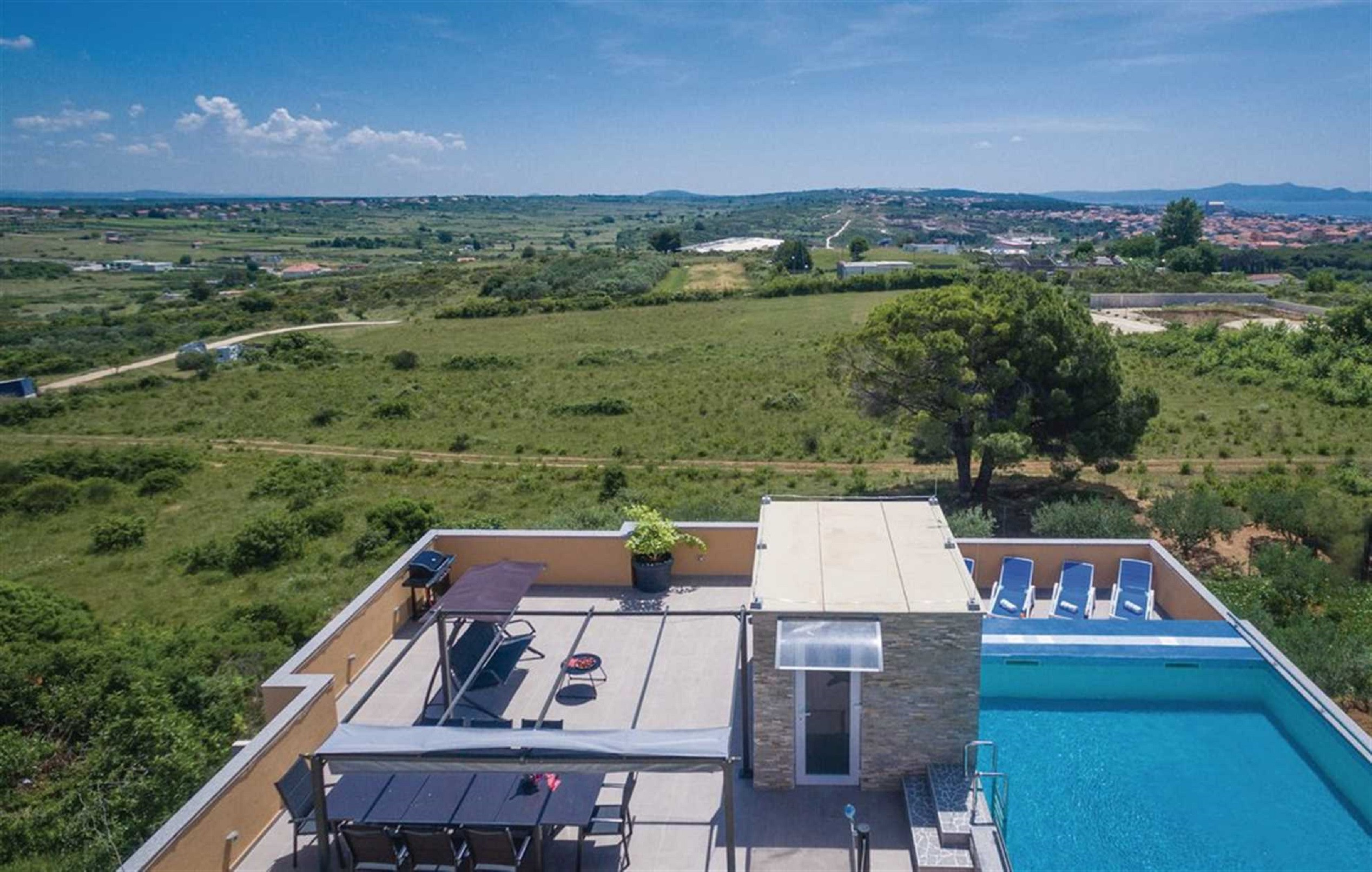 The modern and luxurious Villa Mary Lou is located in Zadar, a popular destination with a rich history, stunning sunsets, and incredible cultural landmarks. Zadar is the perfect place for a family or a group of friends seeking the perfect blend of relaxation by the sea and city exploration.