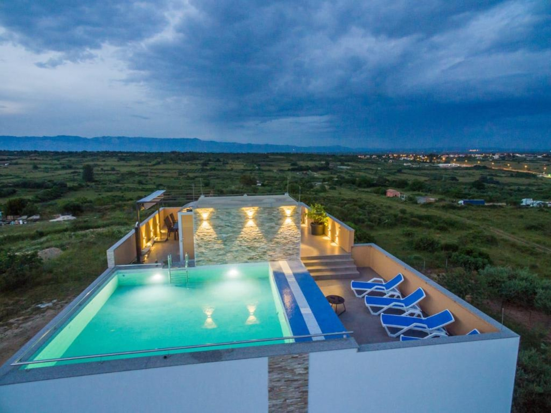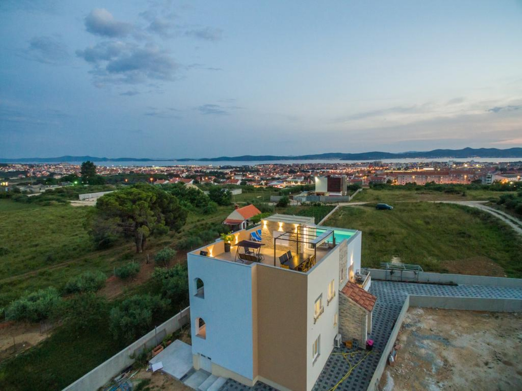 This Unique, modern and breath taking Panoramic View Villa is located in Zadar, 2.6 km from old city center. It is surrounded with relaxing sights at mountain Velebit, Adriatic sea and islands. Peaceful and quite area gives you total privacy, and still you are near to the city center if you want to explore something new.