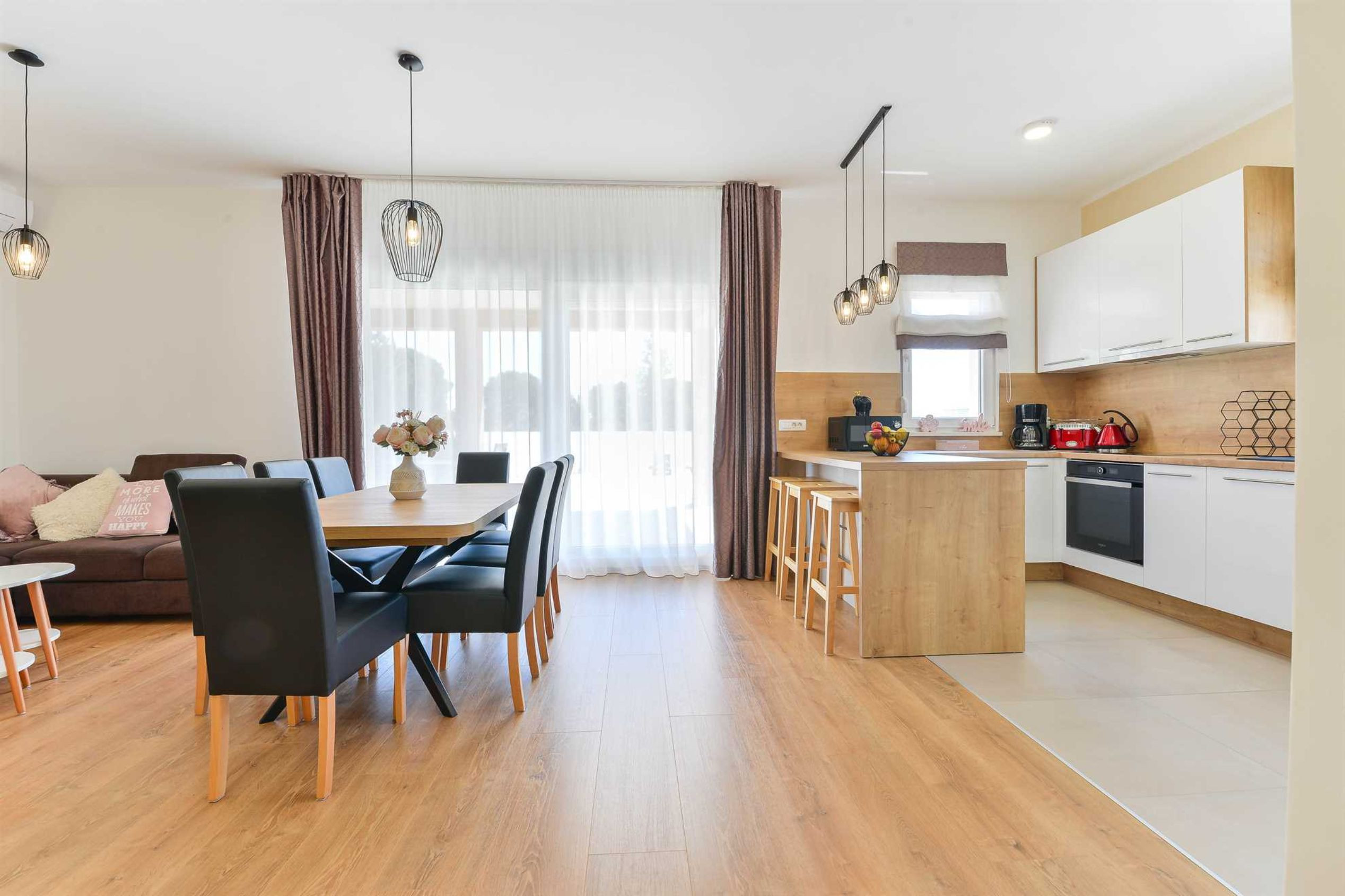The outdoor space is a beutiful, open area with a heated pool. It is connected to a roofed terrace with a seating and dining area, where you will enjoy your meals which you prepared on the outdoor BBQ.