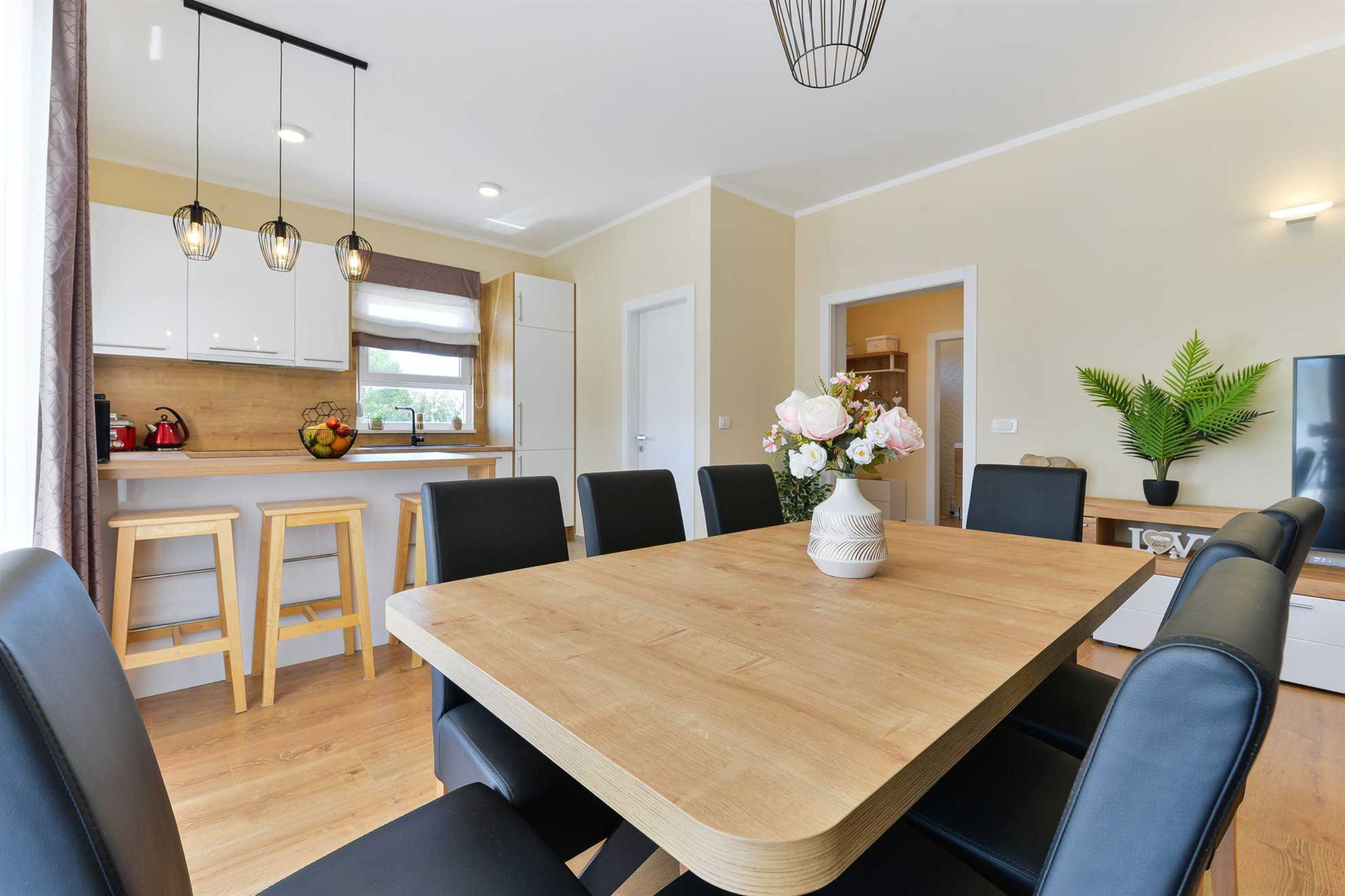 The holiday home offers 120 m² of space for up to eight people. The vacation home has three bedrooms that can comfortably accommodate up to 8 guests. This home is ideal for a large group of friends or families traveling together.