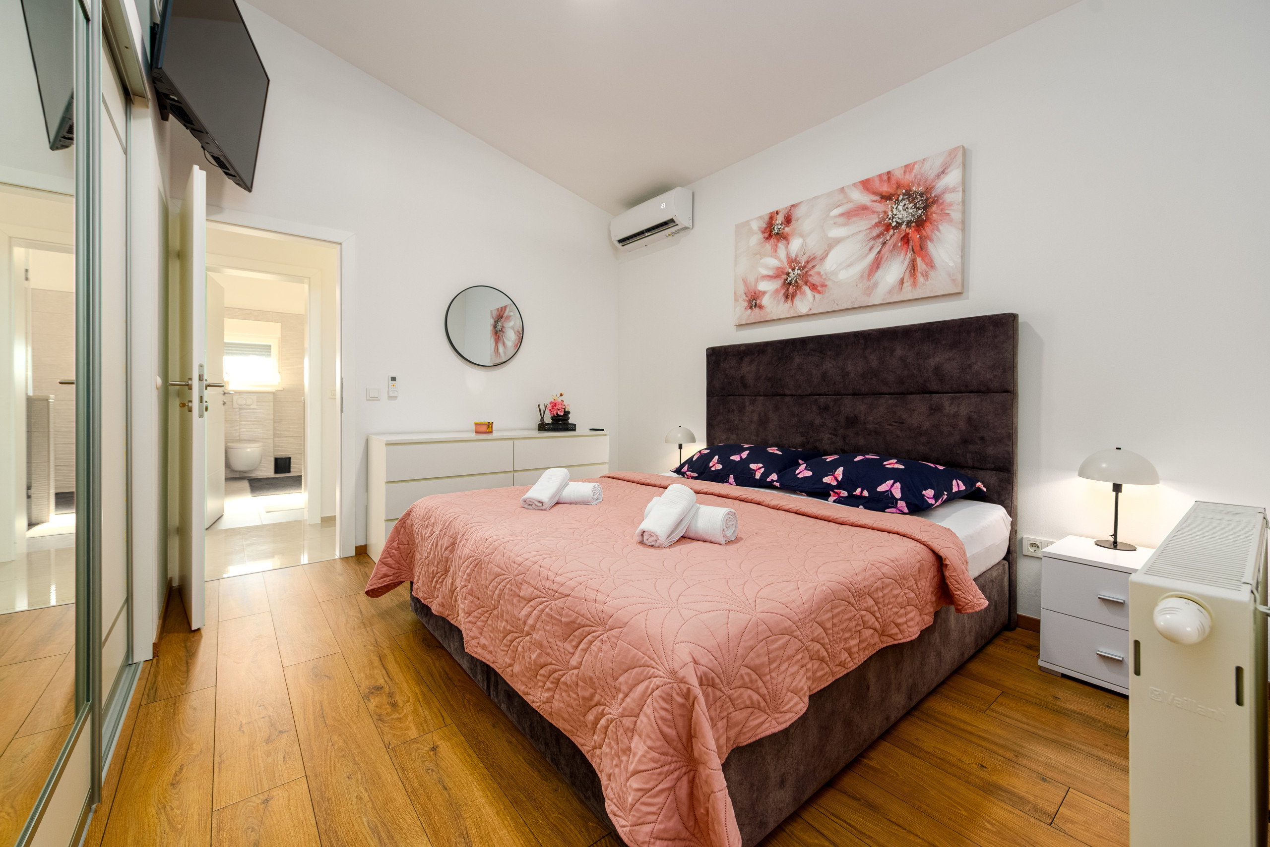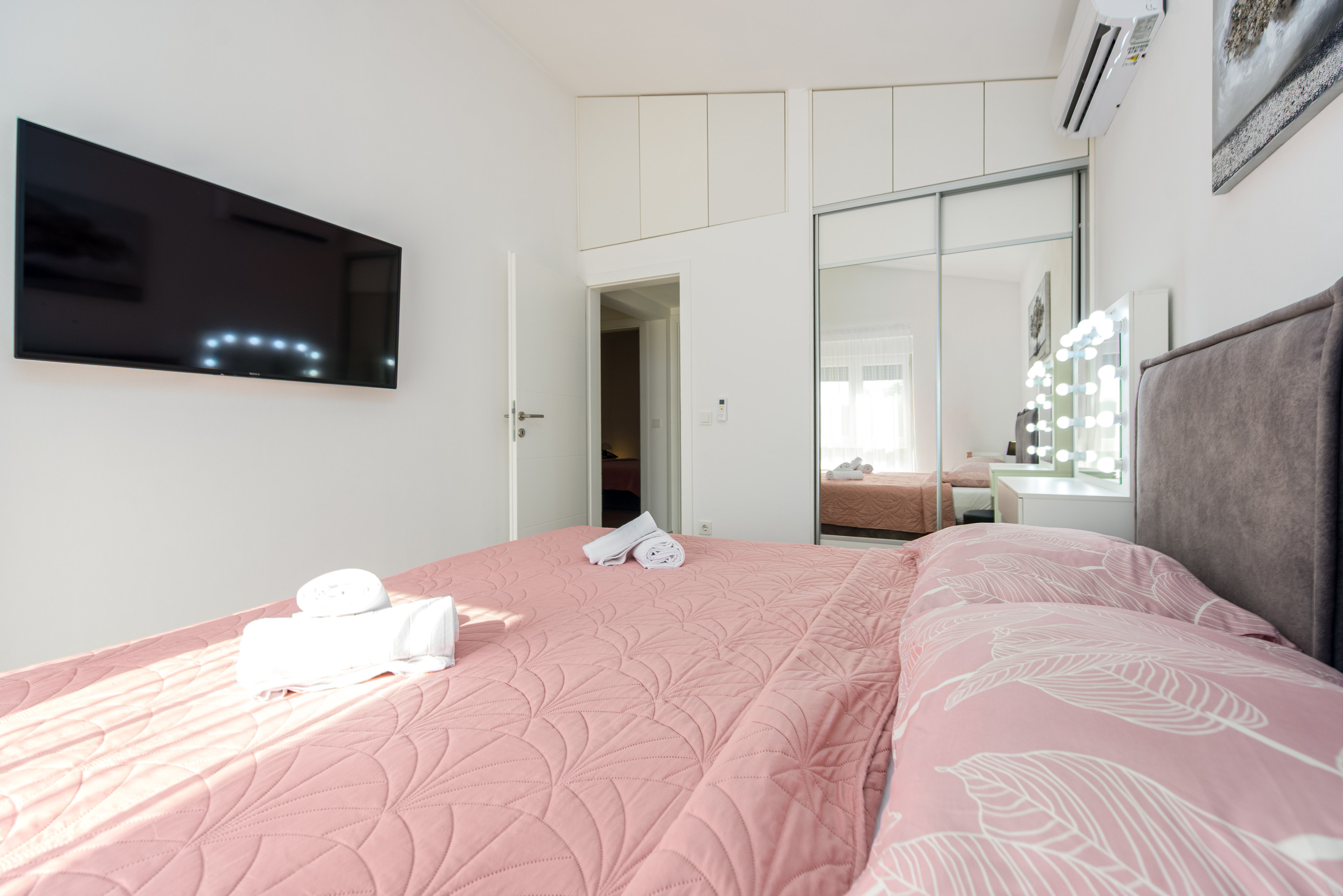Villa Tamaria is located just 100 meters from the well-known Punta Beach, famous for its crystal-clear waters. Nearby is the historic town of Nin, renowned for its old town center, saltworks, and the famous sandy Queen’s Beach with therapeutic mud. Within easy reach is the city of Zadar, a place rich in history and cultural landmarks, featuring famous attractions such as the Sea Organ and the Greeting to the Sun. Explore its charming squares, restaurants, and numerous souvenir shops to complete your holiday experience.