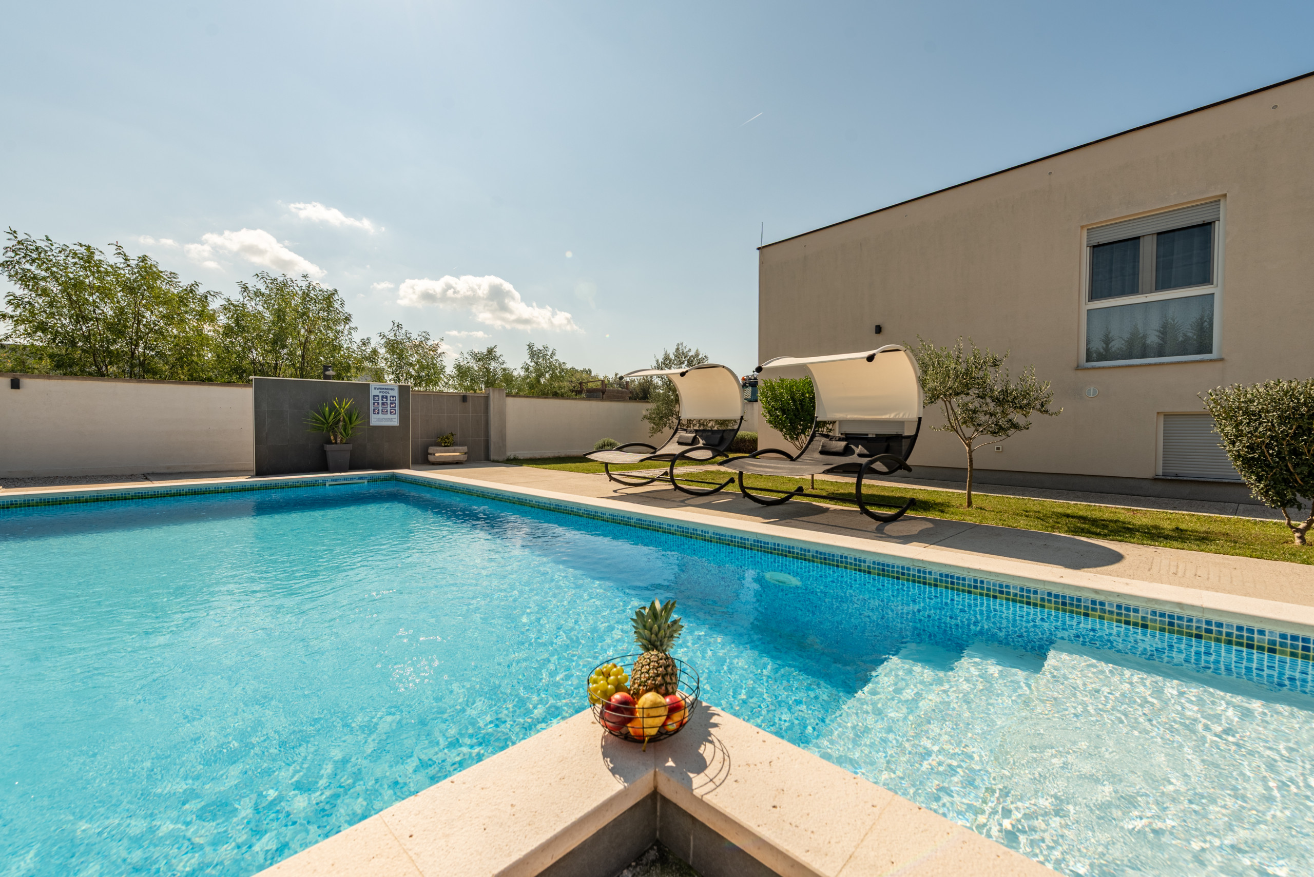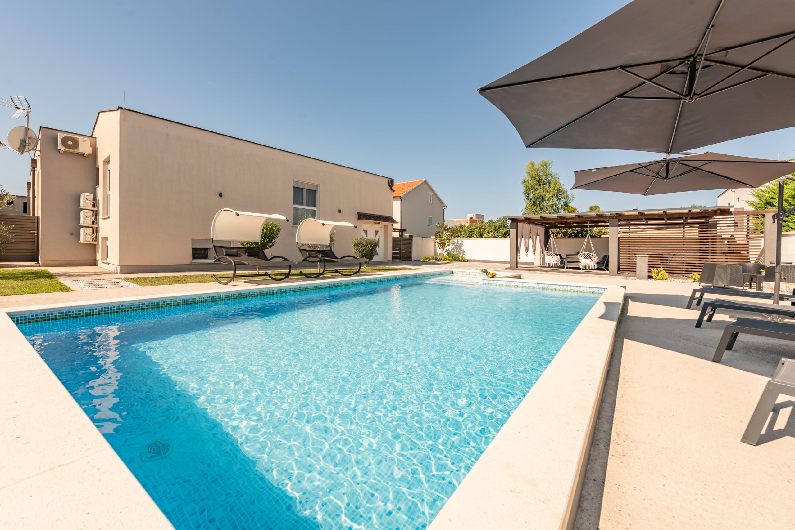 This beautiful holiday home with a swimming pool is located in Zaton, just a few kilometers from the attractive old town of the Dalmatian city of Zadar.