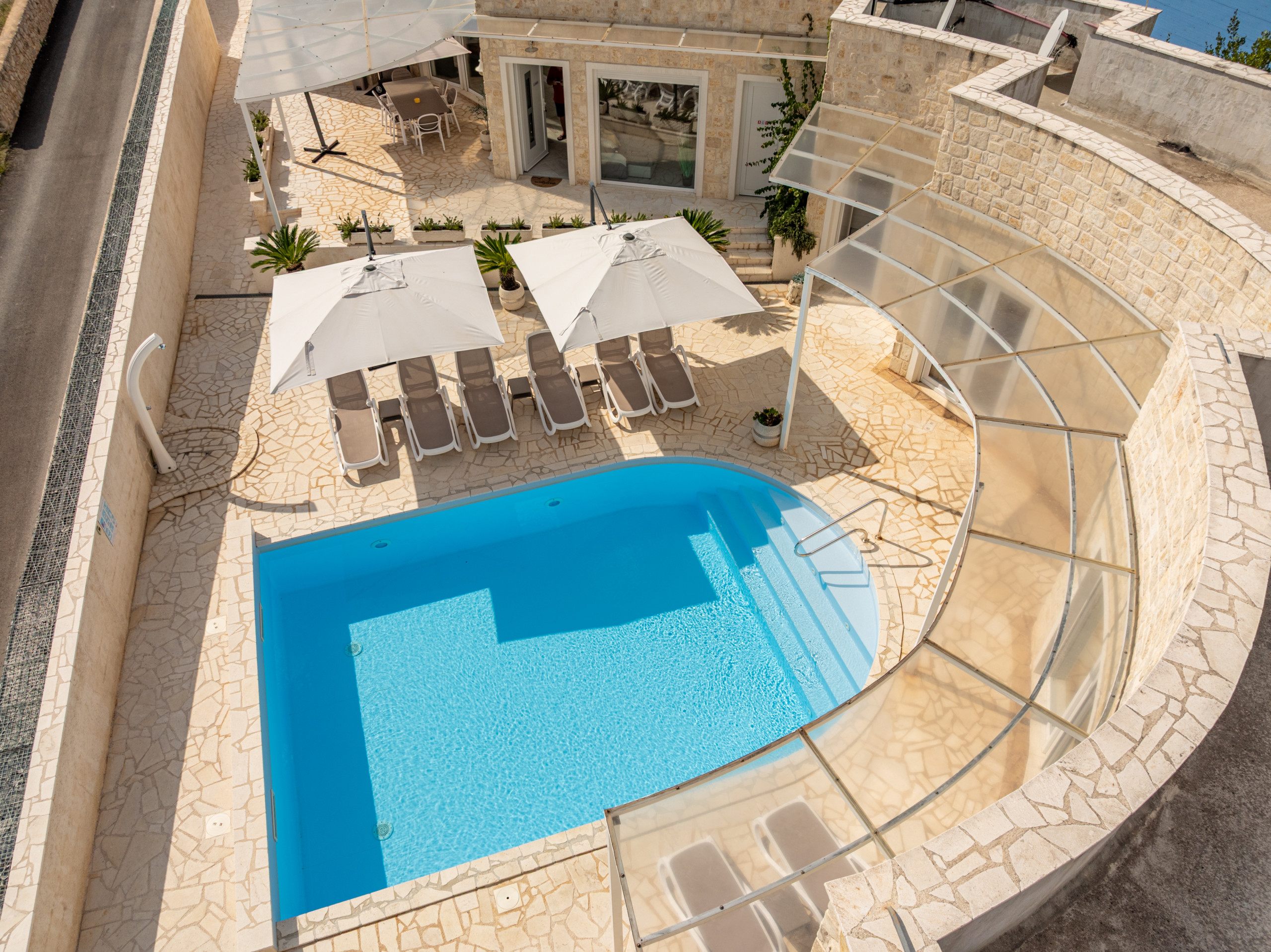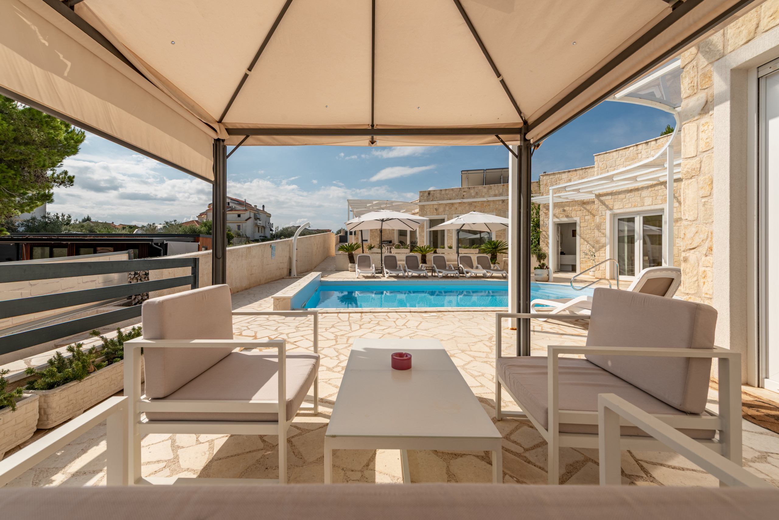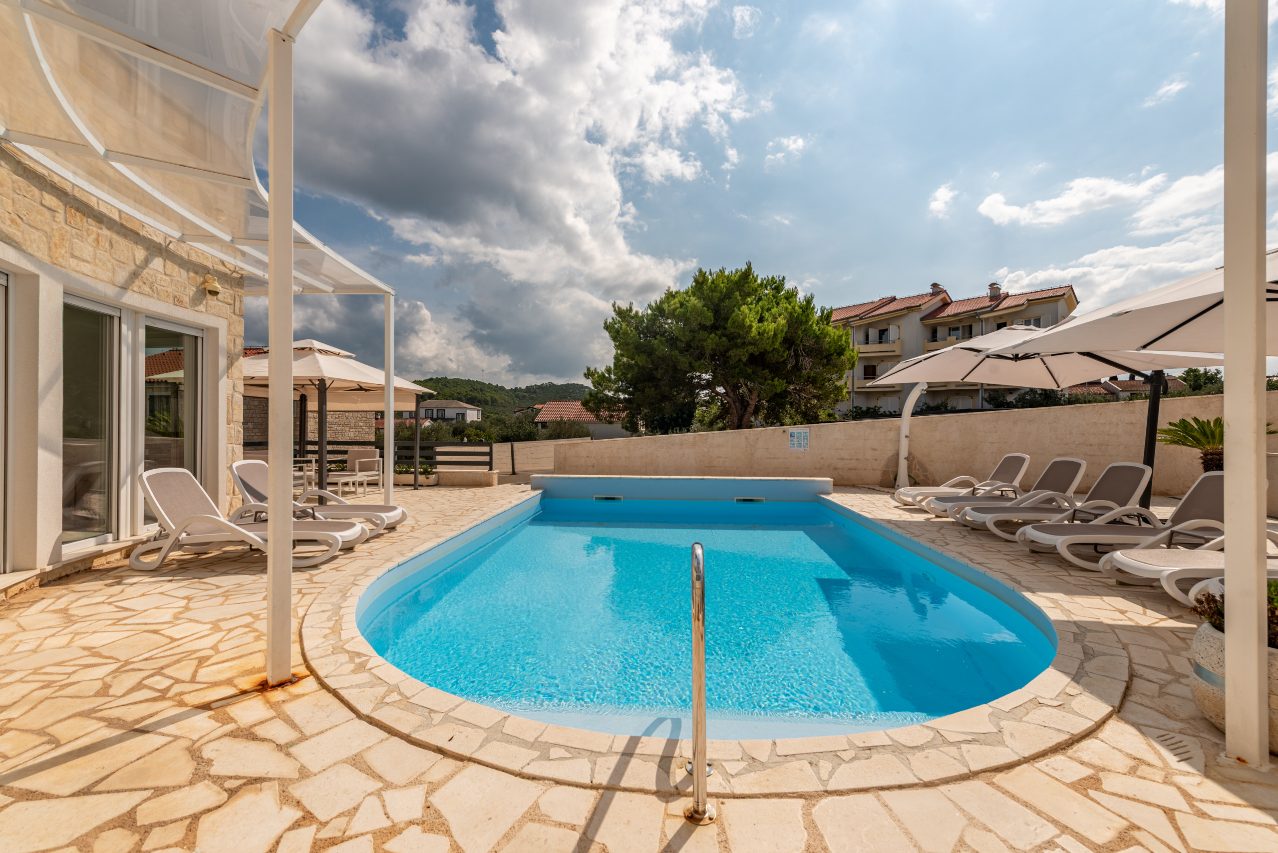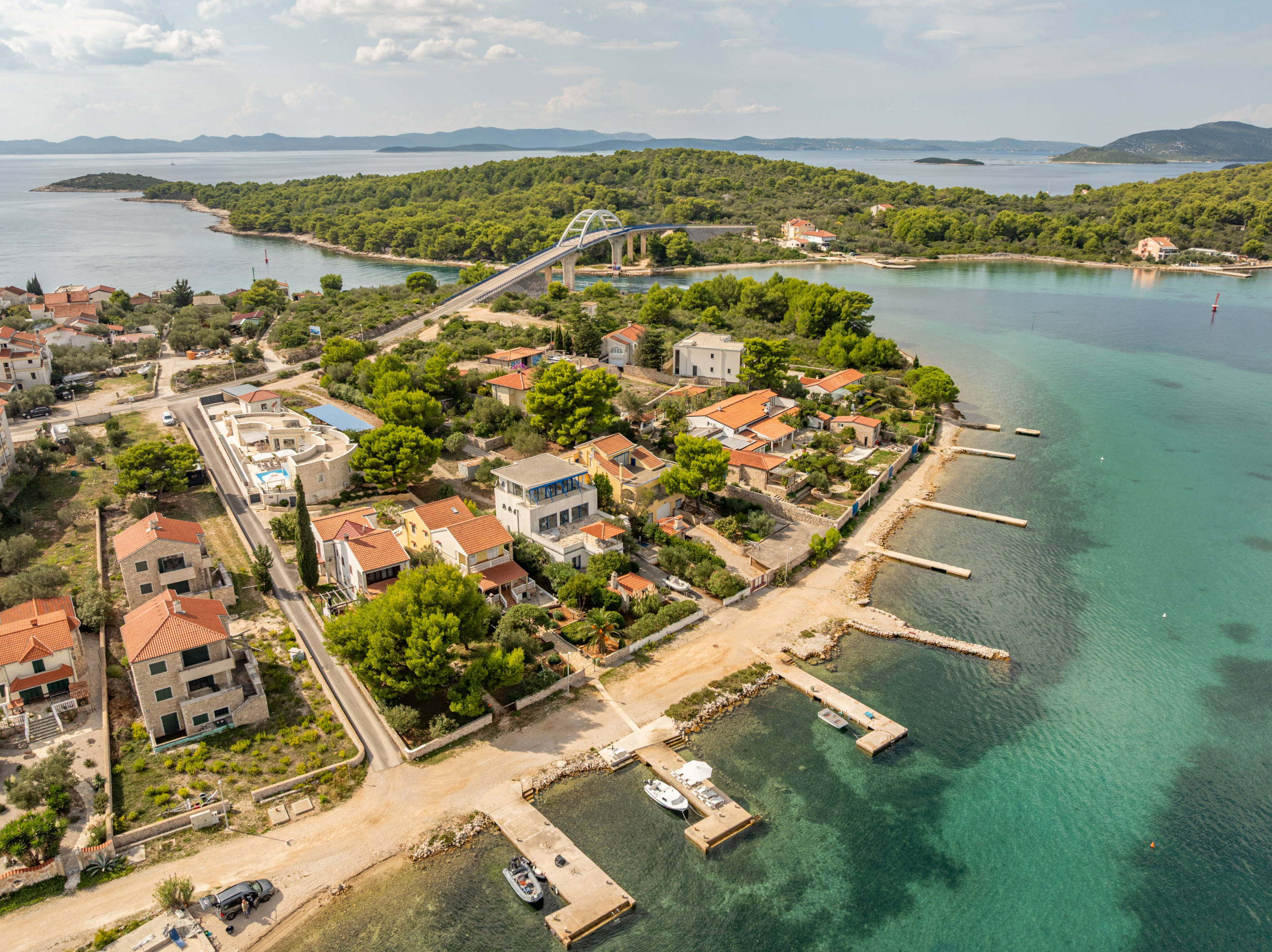 Just 60 meters from the sea, the villa is perfectly positioned for enjoying the natural beauty of Pašman. The ferry terminal is only a ten-minute drive away, ensuring easy access to the island. Guests can explore numerous cycling and hiking trails, discover hidden beaches, or visit historical landmarks. Nearby, traditional Dalmatian taverns offer authentic local cuisine. This unique villa provides the perfect combination of luxury, privacy, and a natural setting, delivering an unforgettable holiday experience on one of Croatia’s most beautiful islands.