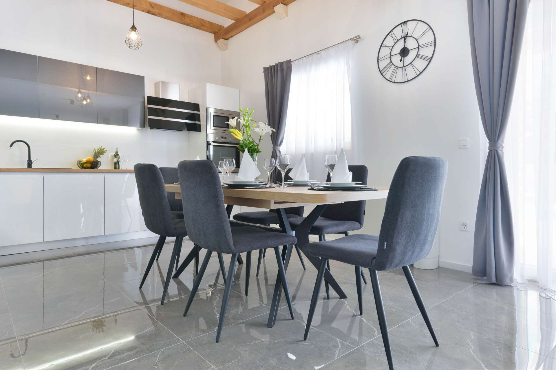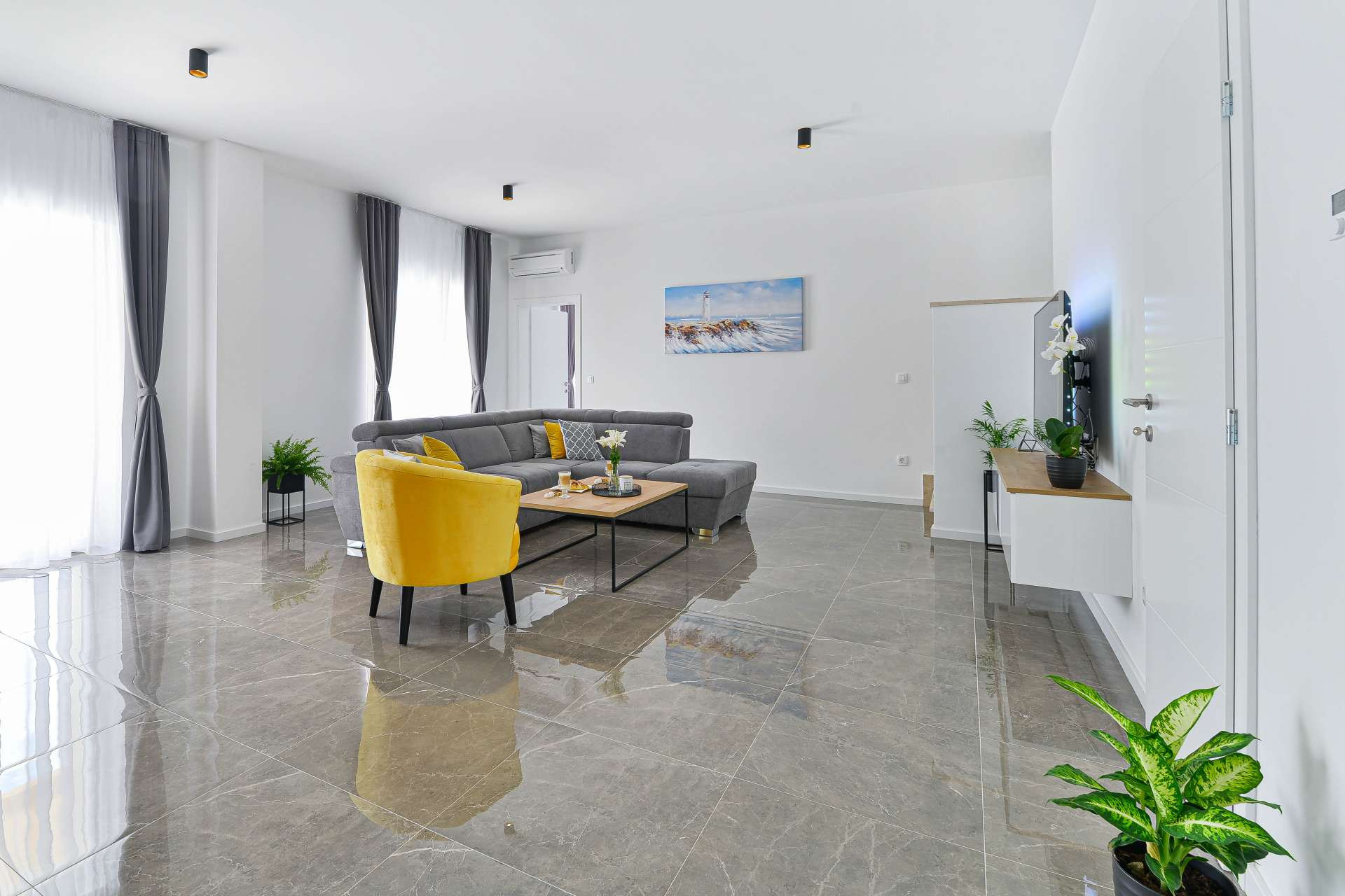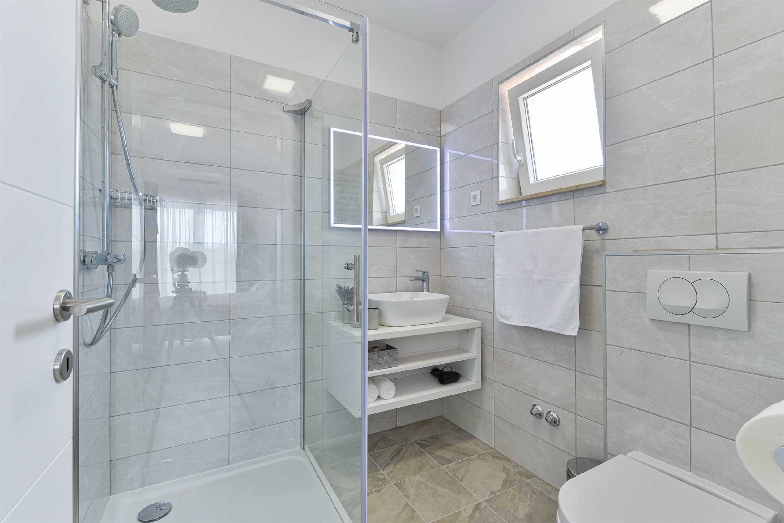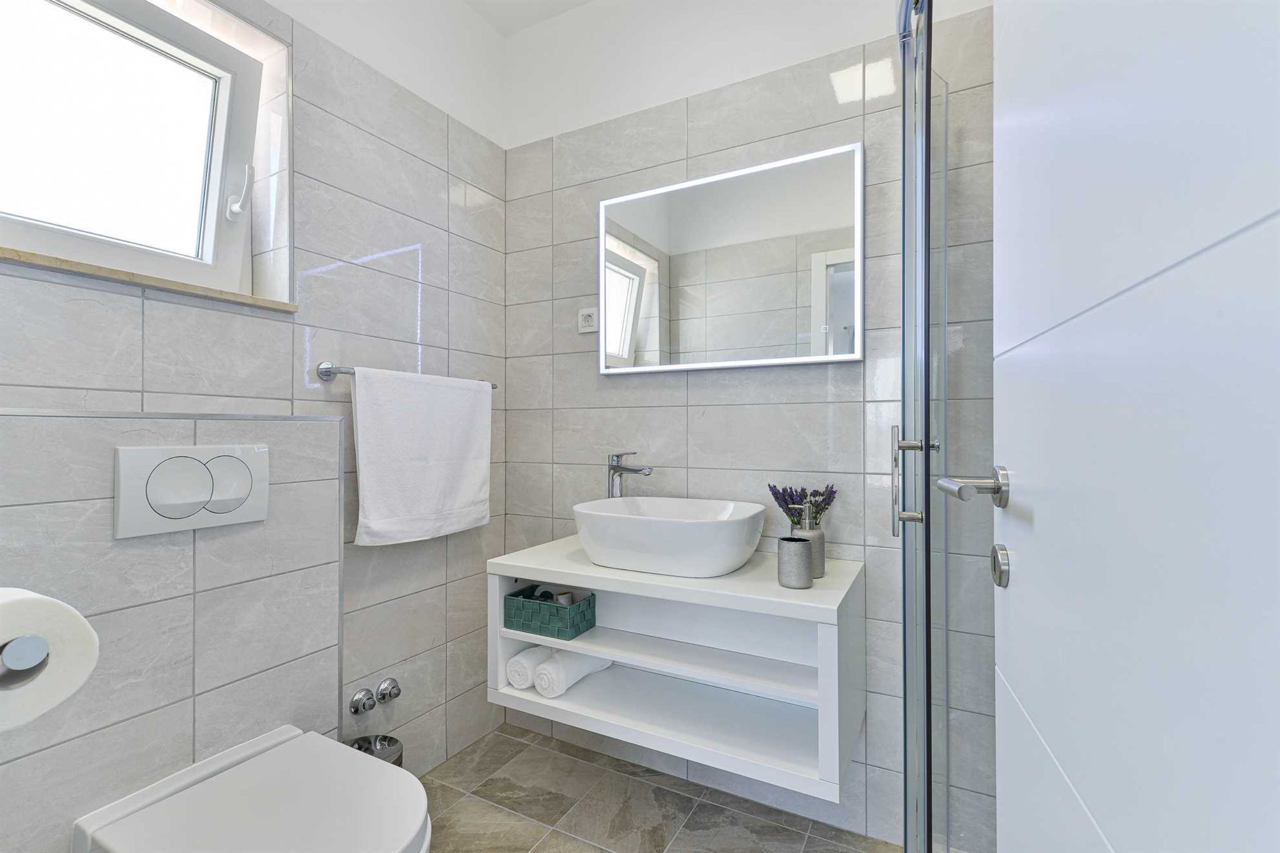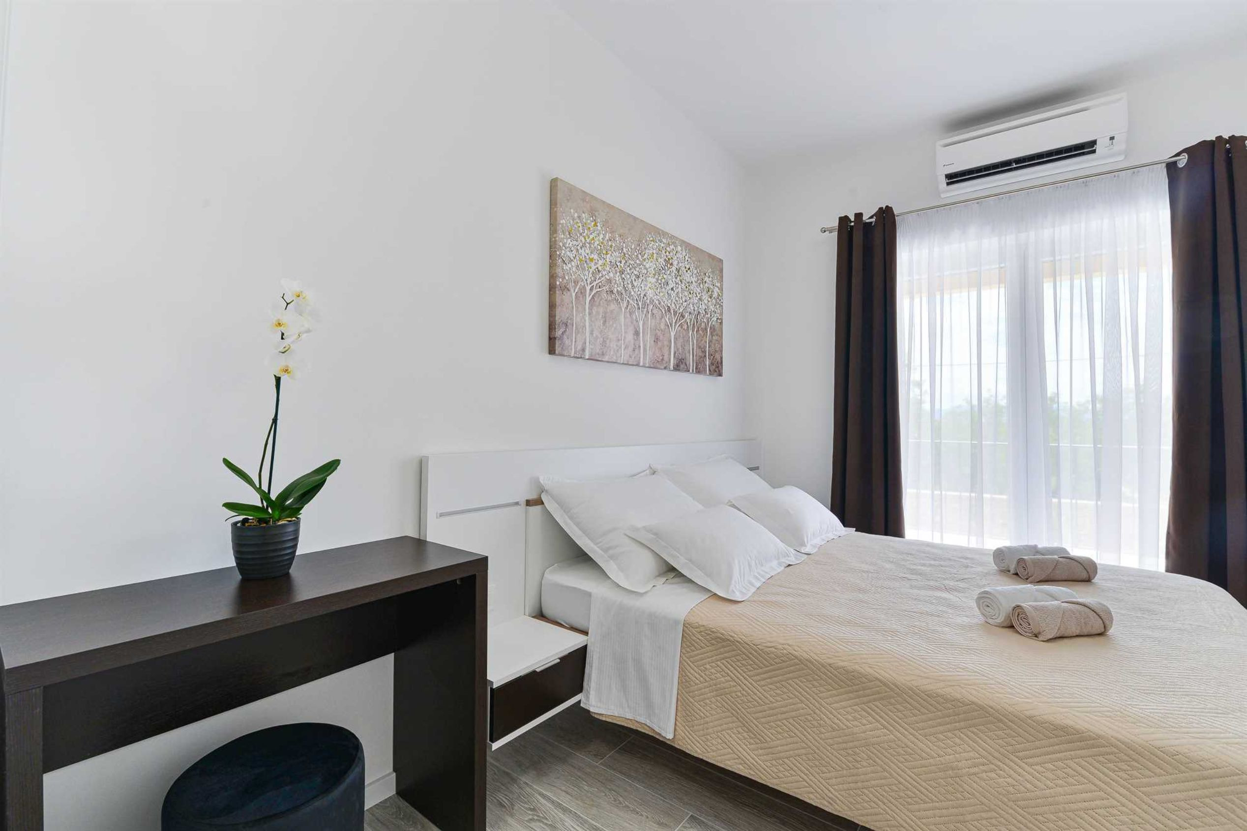 This stone, beautiful and brand new Villa is located in a small Dalmatian village Kneževići, near Vinjerac. Spacious The villa consists of three bedrooms with bathrooms. One bedroom is located on the ground floor and the other two on the first floor. Each room has a large double bed and a bathroom within the room.Two rooms on the first floor of the Villa share access to a beautiful terrace, which overlooks the garden with outdoor heated pool.On the ground floor, besides the bedroom, there is a modern living room with comfortable furniture, a fully equipped kitchen with new quality appliances and a large master bathroom that is adapted for people with disabilities.The ground floor of the Villa has access to a terrace with garden furniture, a summer kitchen with barbecue and a large outdoor heated pool with sun loungers and a shower.Use of the entire Villa is for guests only, and parking is free and secure. Ground floor of the villa is suitable for elderly and has wheelchair access.